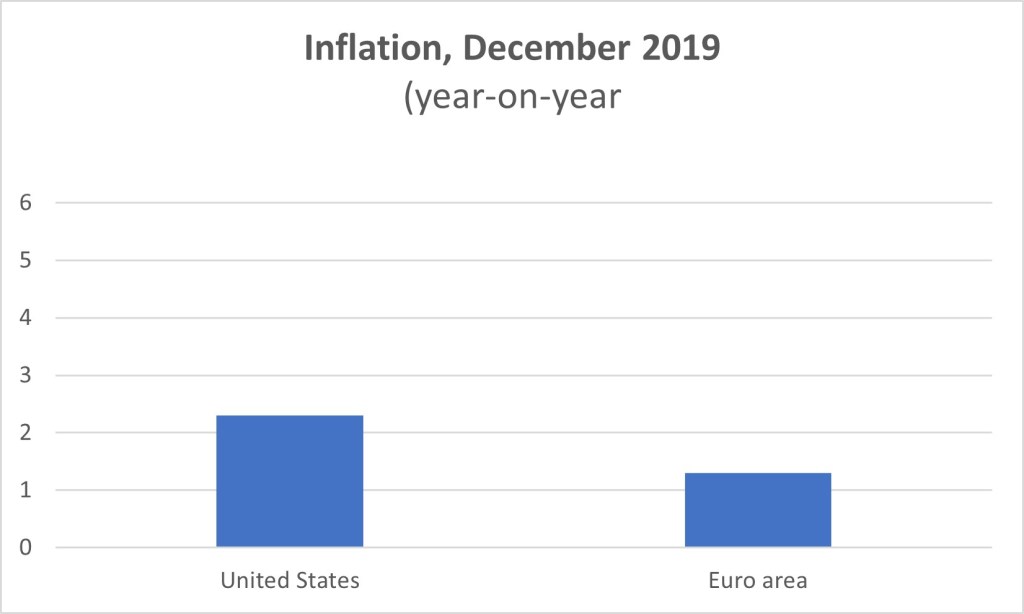 Now for the second point. Before the pandemic started, the US and the Euro area had similarly low inflation.