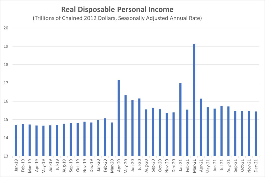 How significant were these transfers? Very significant. At one point, payments from the government were making up more than a third of disposable income. That’s a huge percentage, so huge that I think I should repeat it: at one point, more than one-third of the money received by households was coming from the government.