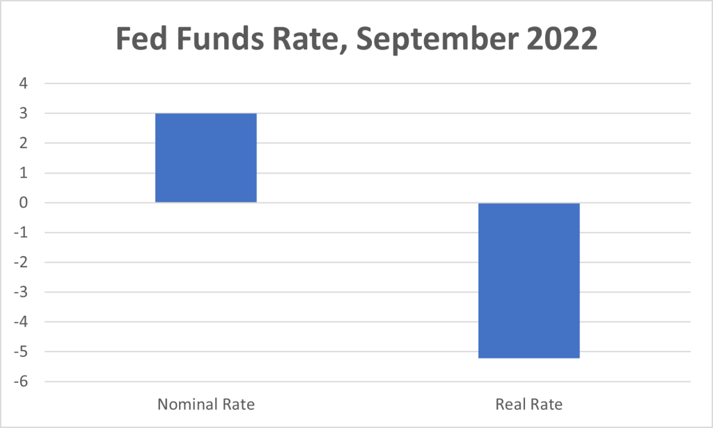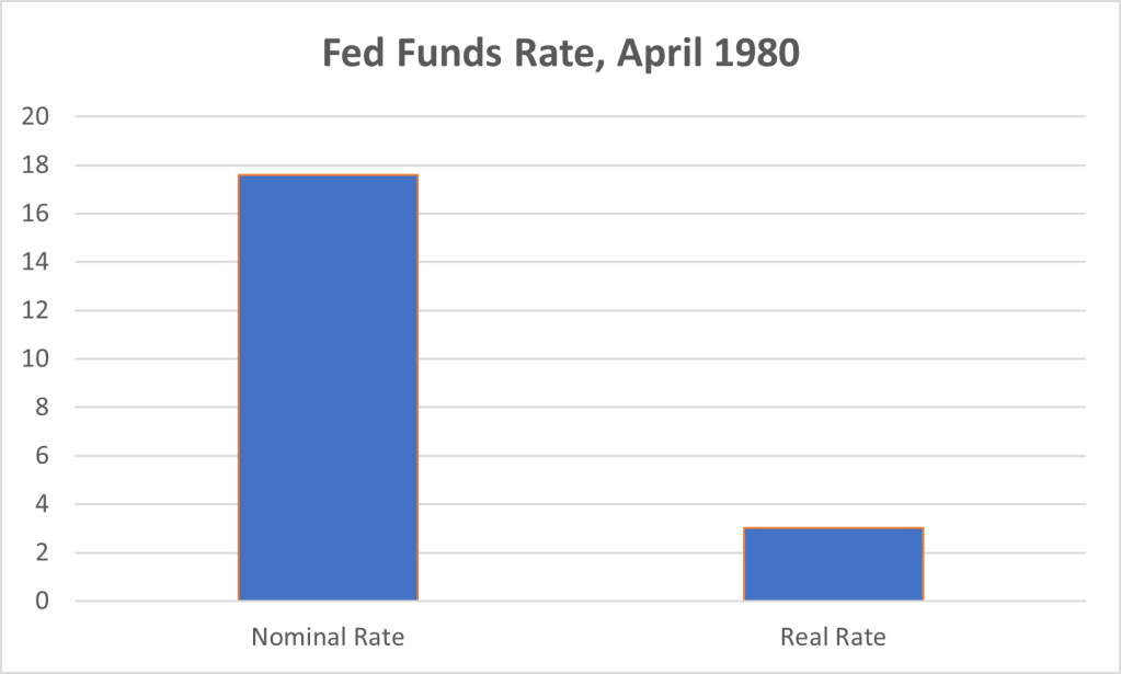 No one is saying that interest rates need to be that high today. For a start, eradicating high inflation in the 1980s was particularly difficult because it had been entrenched in the system for more than a decade. In the current case, high inflation has only been plaguing the country for the past year. That said, it remains true that by normal standards, Fed rates still seem, um, a bit low.