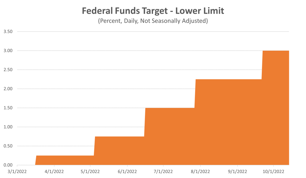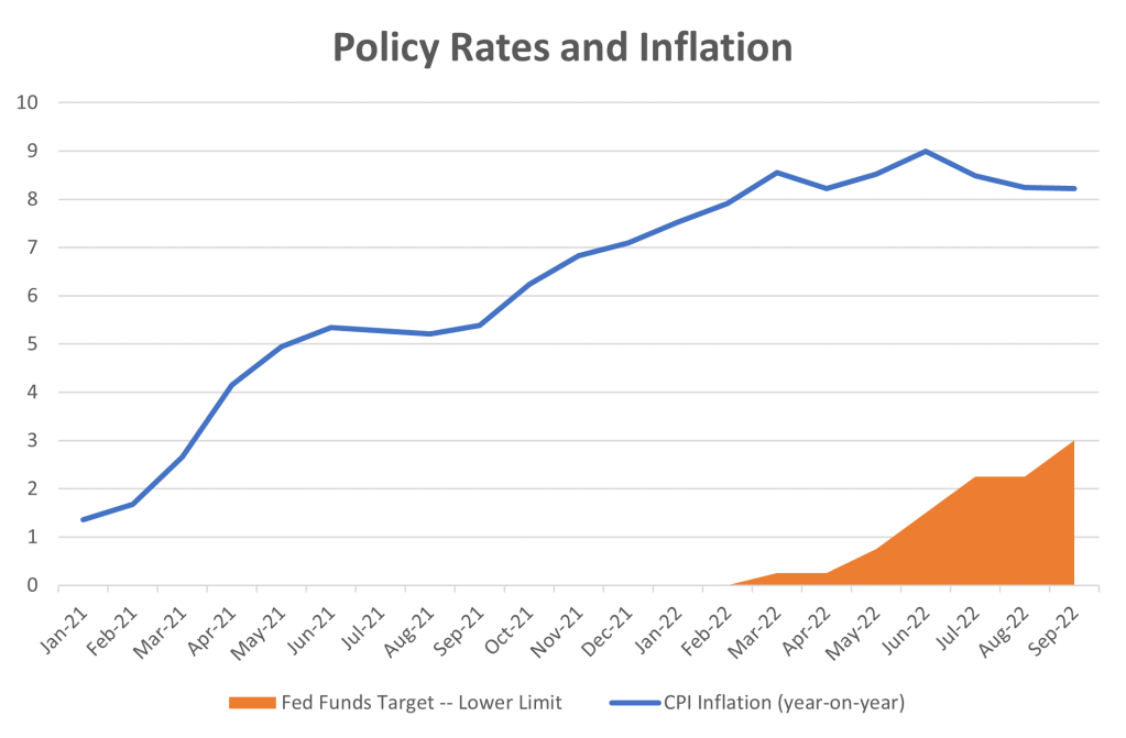 In fact, it’s possible that the Fed’s tightening has been far too aggressive, and is going to drive the economy into recession. Why would this happen? Consider that the Fed has raised interest rates by a huge amount, three full percentage points in just a few months. And this rapid increase is forcing a huge adjustment on the economy.