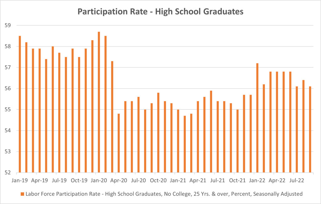 So, consider the case of a married couple, both high school graduates, who typically work at minimum wage-type jobs. Right now, there’s just not a huge pressure on both of them to go out and earn more money. That’s why a lot of them have just not gone back to work in restaurants and shops.